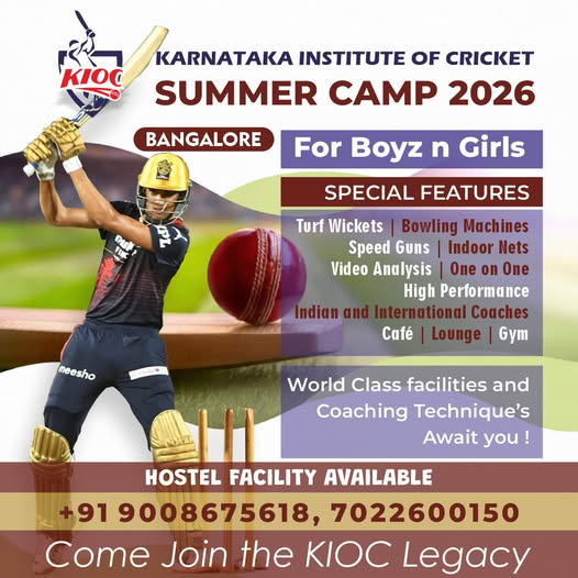 At the Karnataka Institute of Cricket (KIOC), we take immense pride in the incredible accomplishments of our star cricketers. Bangalore, Mysore.